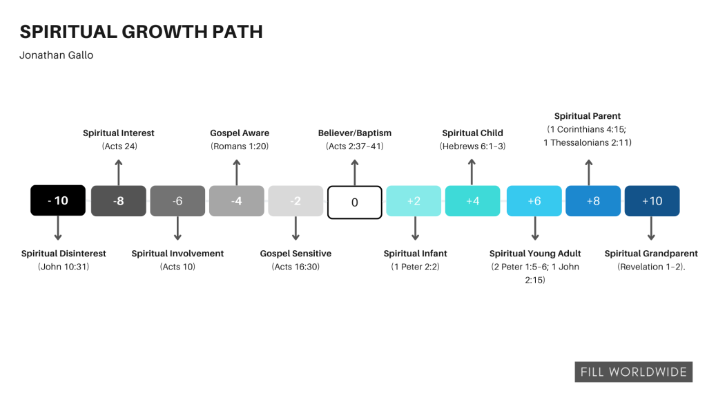This scale reflects stages of spiritual development. As you identify where a person is, you can tailor your approach to help them take their next step.